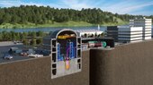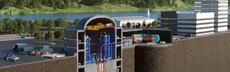 Die Technologie kombiniert somit die passiven Sicherheitsmerkmale des mit Blei gekühlten Schnellen Reaktors (LFR) mit denen des Salzschmelze-Reaktors (MSR). Für zusätzlichen Schutz sorgen integrierte Schmelzstopfen in den Leitungen: Wenn die vorgesehene Temperatur doch überschritten wird, lösen sie sich auf. Dann läuft der Brennstoff nach unten in sichere Behälter ab und die Kettenreaktion stoppt sofort. Durch seine geringe Grösse kann der Reaktor ausserdem in einem unterirdischen Betonbunker sicher untergebracht werden. Mehrere Einheiten lassen sich zu einem Grosskraftwerk kombinieren, was den Dual-Fluid-Reaktor wiederum zu einem kleinen, modularen Reaktor (SMR) macht.