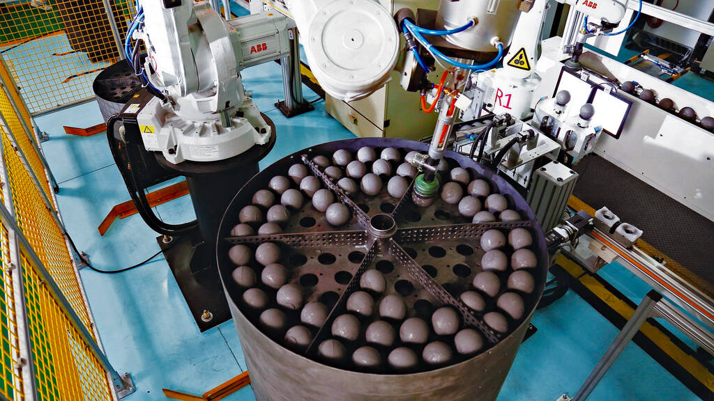 Diese gut geschützten Kügelchen werden in einem weiteren Produktionsschritt mit Grafitpulver gemischt und zu einer etwa tennisballgrossen Kugel gepresst. Schliesslich werden sie nochmals mit einer Grafitschicht ohne Brennstoff überzogen. Das Grafit, in das die Kügelchen eingebettet sind, wirkt – zusammen mit dem Reflektor an der Reaktorwand – als Moderator zum Abbremsen der Neutronen, damit es überhaupt zu Kernspaltungen kommt. So entsteht ein Kernbrennstoff, der auch bei den denkbar höchsten Temperaturen im Reaktor intakt bleibt.
